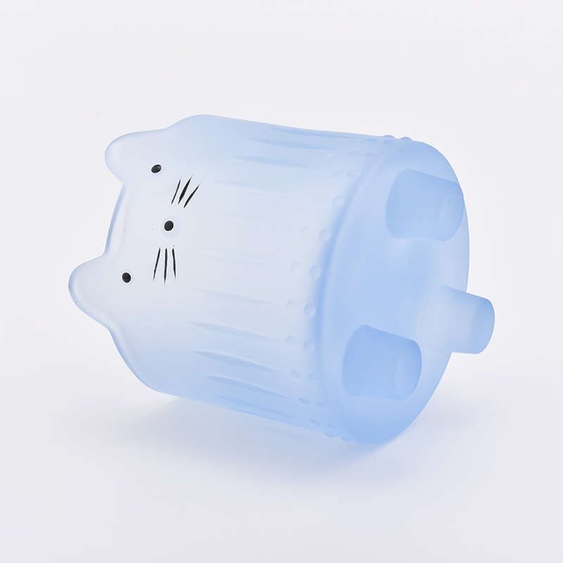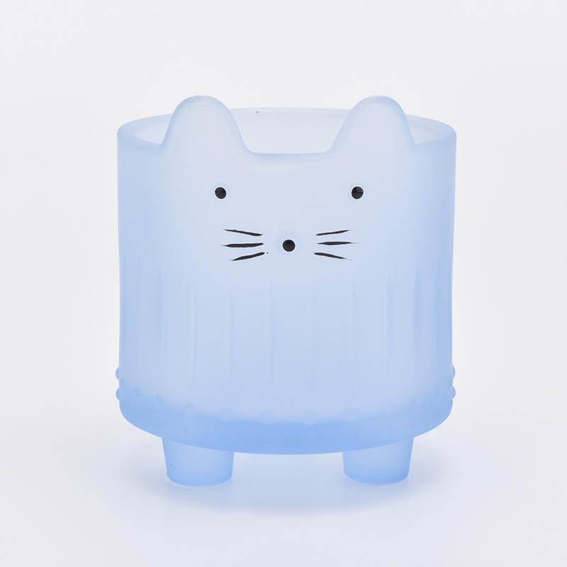 Candelabros de cristal con velas, tarros con un precioso diseño de gatito para decoración azul