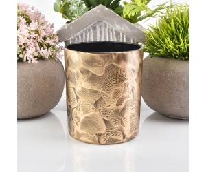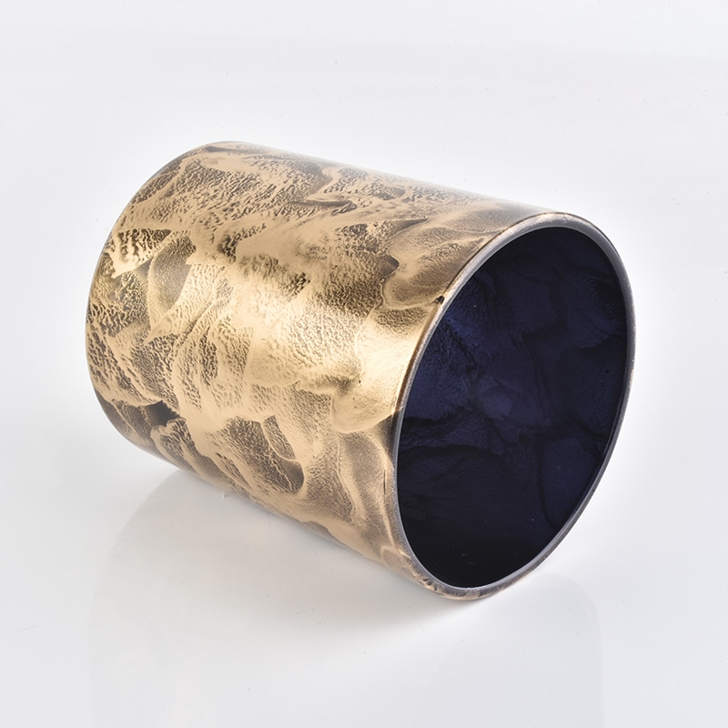 cylindryczne szklane naczynie ze świecą ze złotym wzorem chmurowym