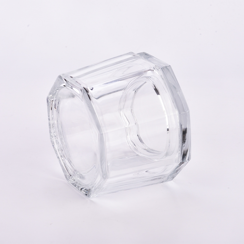 This octagonal clear glass candle jar with lid is a large capacity candle container with a capacity of 648ml, suitable for large candles. It is made of high quality transparent glass material with elegant appearance and excellent transparency, which can clearly show the burning process of the candle.