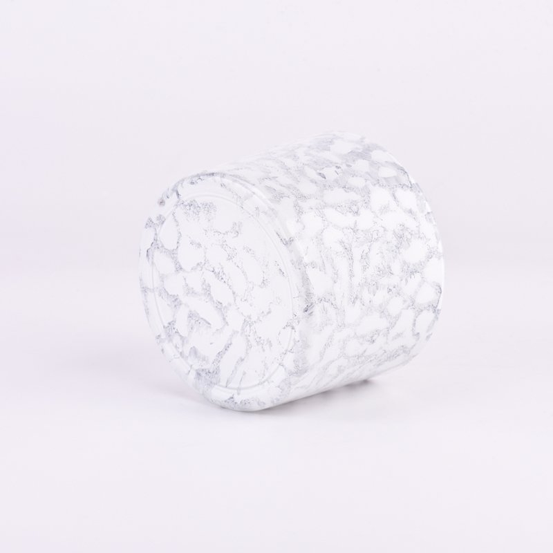 Luxury custom grey marble-patterned glass candle holder with a wide opening design |