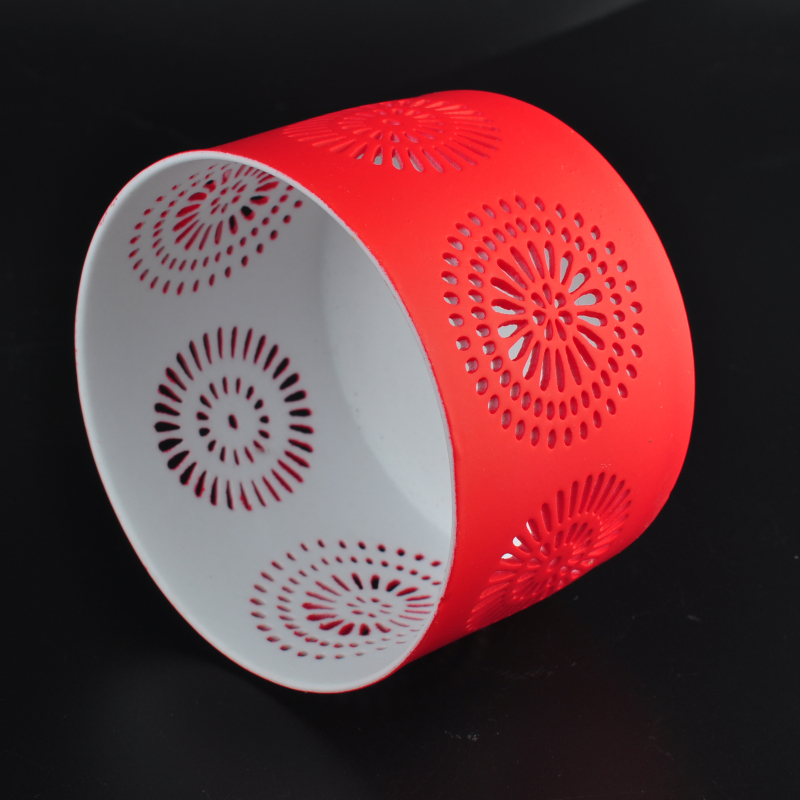 - Your position:Home > Products > Ceramic Candle Holders > Red hollow flower ceramic roun.....
