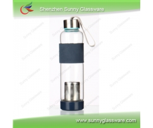 New drinking glass bottle with stainless lid, infuser and silicone sheet